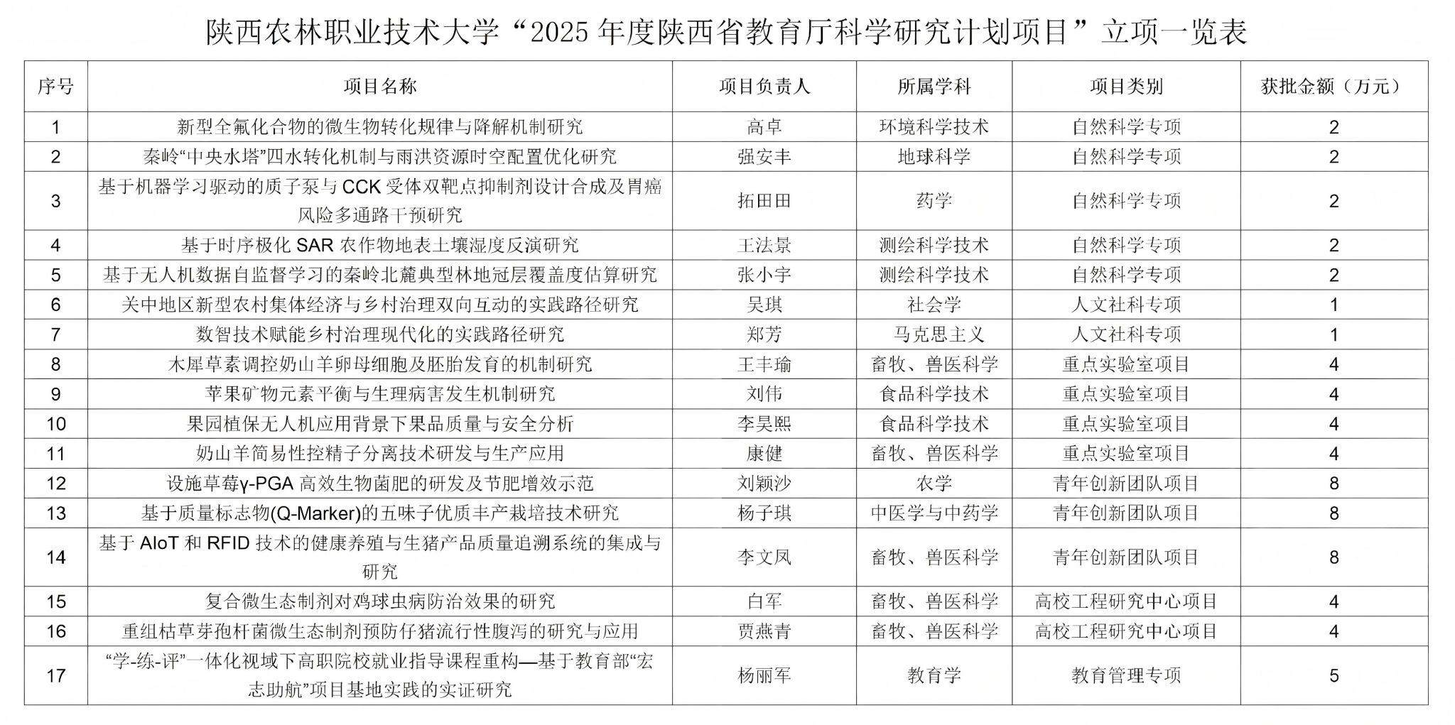 近日,省教育厅印发《关于下达2025年度科学研究计划项目的通知》。经组织动员、校内专家评审打磨、省教育厅形式审查及专家评审等多环节遴选,我校共有17个项目获批立项,获资助经费总额65万元,立项数量与资助经费额度均创我校在省教育厅科研计划项目中的历史新高。