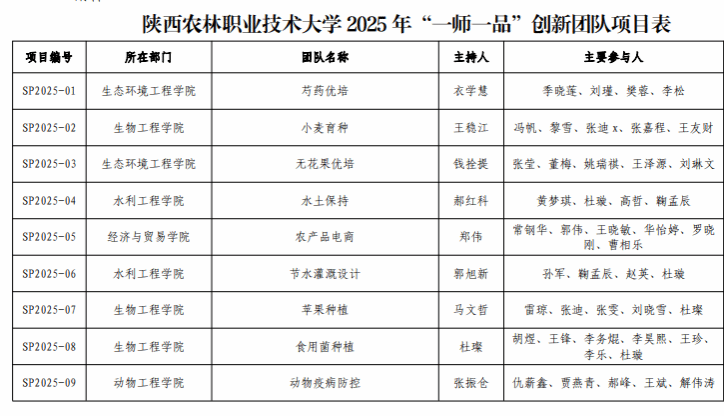 “一师一品”科研创新团队汇总表