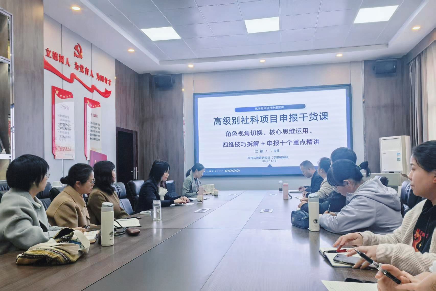 为充分发挥科技与教育研究处“科研服务、学术支撑”职能,助力二级学院提升纵向社科项目申报质量,推动学校科研工作“提质增量”,11月13日下午,我校科技与教育研究处(学报编辑部)吴薇副研究员受邀赴旅游与管理学院,开展纵向社科项目申报专题宣讲。旅游与管理学院20余名教师代表参会,学院学术委员会委员、专业带头人苟小亮主持宣讲。
