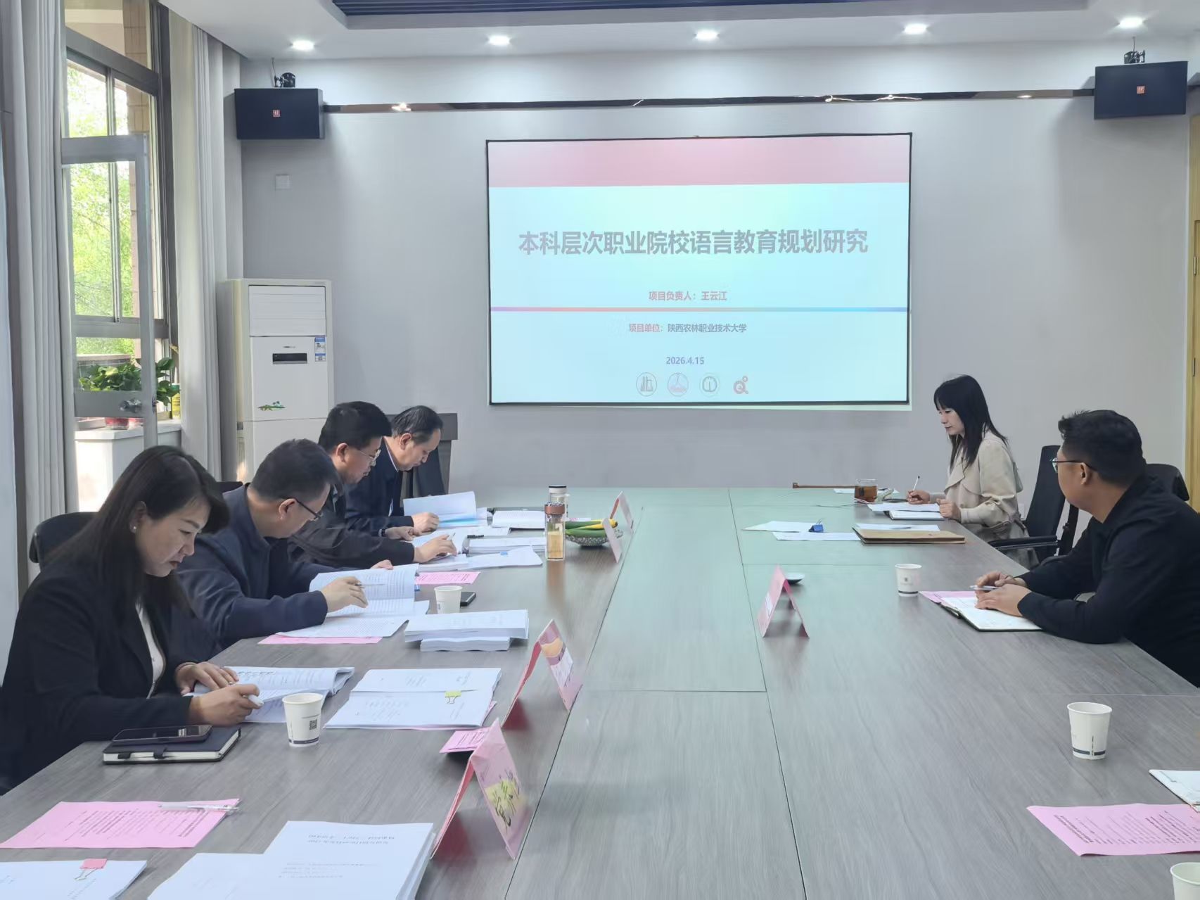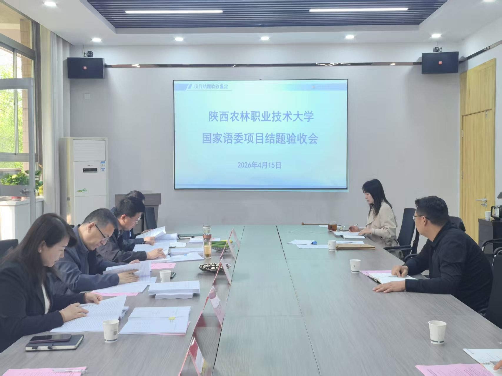 为深入贯彻落实国家语言文字事业发展规划,服务职业教育高质量发展需求,扎实推进学校科研工作提质增效,4月15日上午,国家语委“十四五”科研规划科研项目结题鉴定会在我校图书楼会议室举行。会议邀请咸阳师范学院文学与传媒学院院长张鹏教授、西北大学文学院副院长陈晓辉教授、我校国际学院院长杨雪霁教授、信息工程学院院长陈高锋教授、党委(校长)办公室副主任党养性教授等五位专家组成评审组。我校科技与教育研究处副处长杨振华主持会议,各项目团队全体成员参加会议。